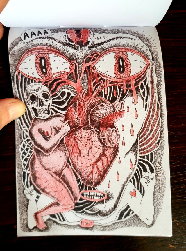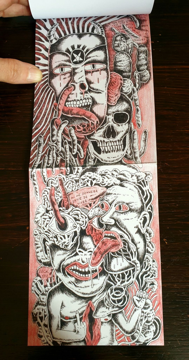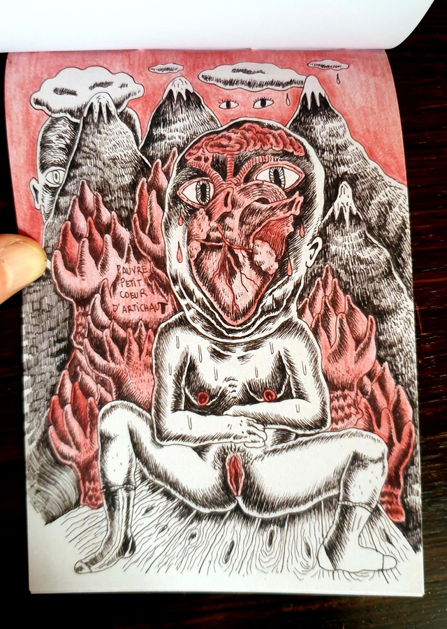 Mini-zine - 24 pages format A6, carte postale et enveloppe, full color giclee print, papier mat 170g, reliure au fil rouge, 25 exemplaires - 2023