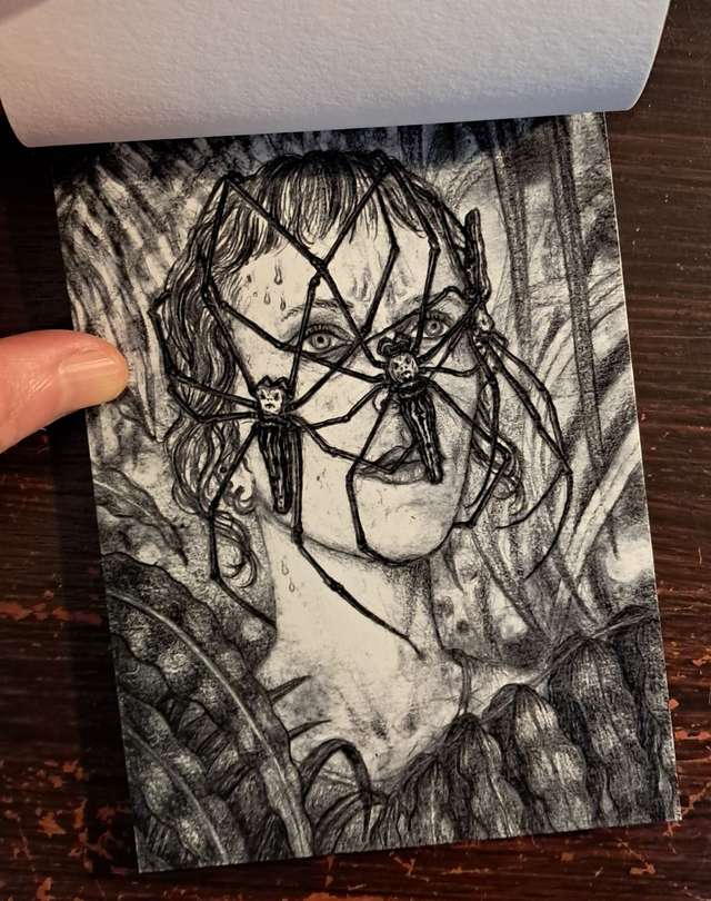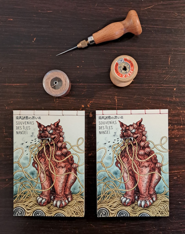 Mini-zine - 20 pages format A6 / Giclee print, papier velvet etching PPD 270g, reliure au fil rouge ou rouille / 25 exemplaires numérotés et signés / Dessin original en dernière page - 2024